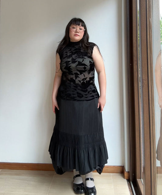 Me Issey Miyake 2-way Velvet Pleats Sheer Cardigan
