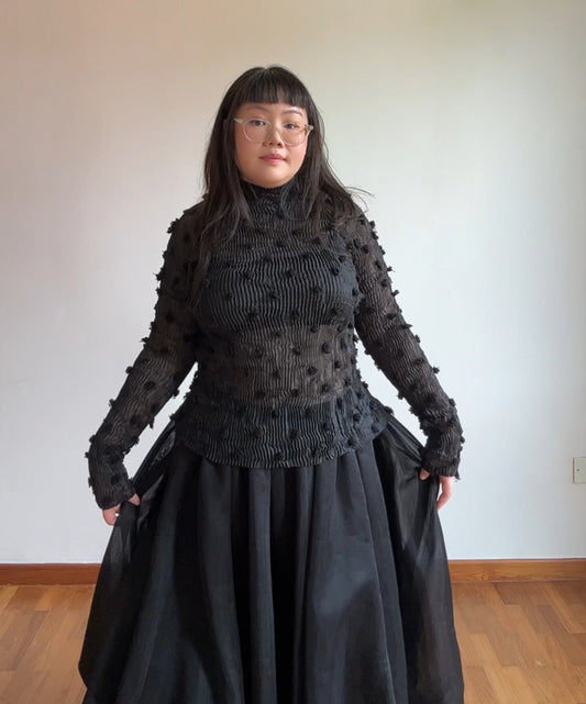 Issey Miyake 90s Sheer Pleated Top with Pom Pom Details