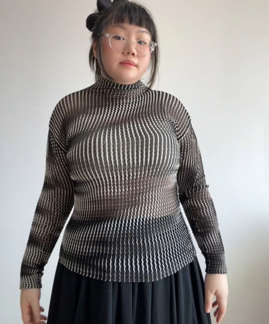 Issey Miyake High Neck Striped Pleats Shirt
