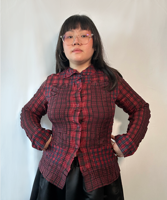 Yoshiki Hishinuma Plaid Shirred Long Sleeve Top