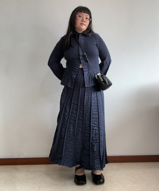 Yoshiki Hishinuma PEPLUM crinkle pleats button shirt