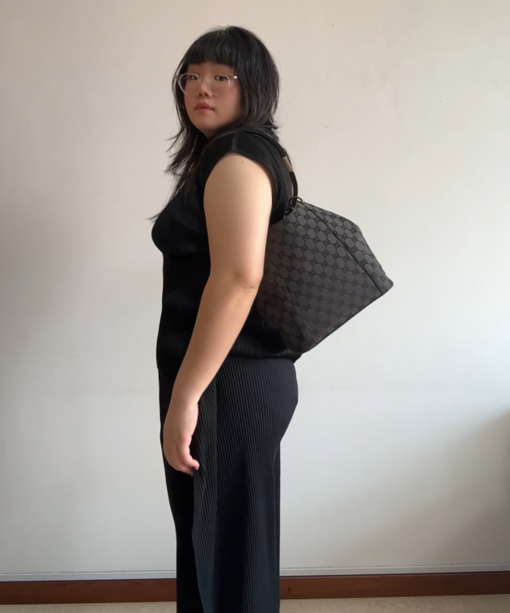 Rare piece from the Tom Ford era (circa 1999), featuring Gucci’s iconic monogram canvas with a unique gathered “curtain” silhouette. Understated yet sultry, a subtle nod to the sensual minimalism that defined Ford’s vision for the house. Fits daily essentials comfortably with a slouchy, feminine shape and structured shoulder strap.