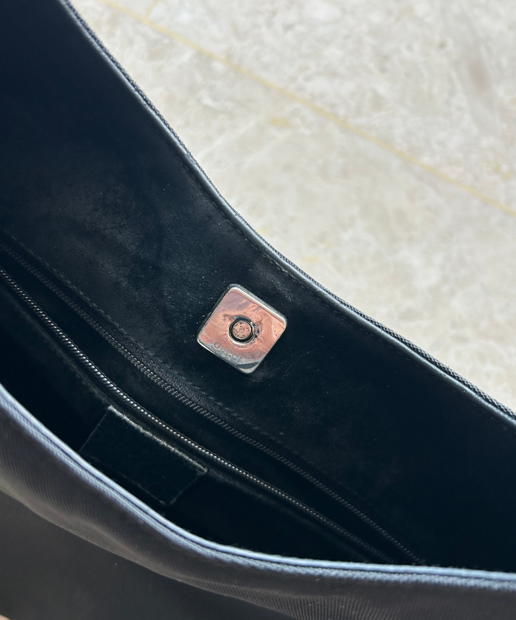 Gucci '90s (Tom Ford era) Black Bamboo Nylon Leather Shoulder Bag