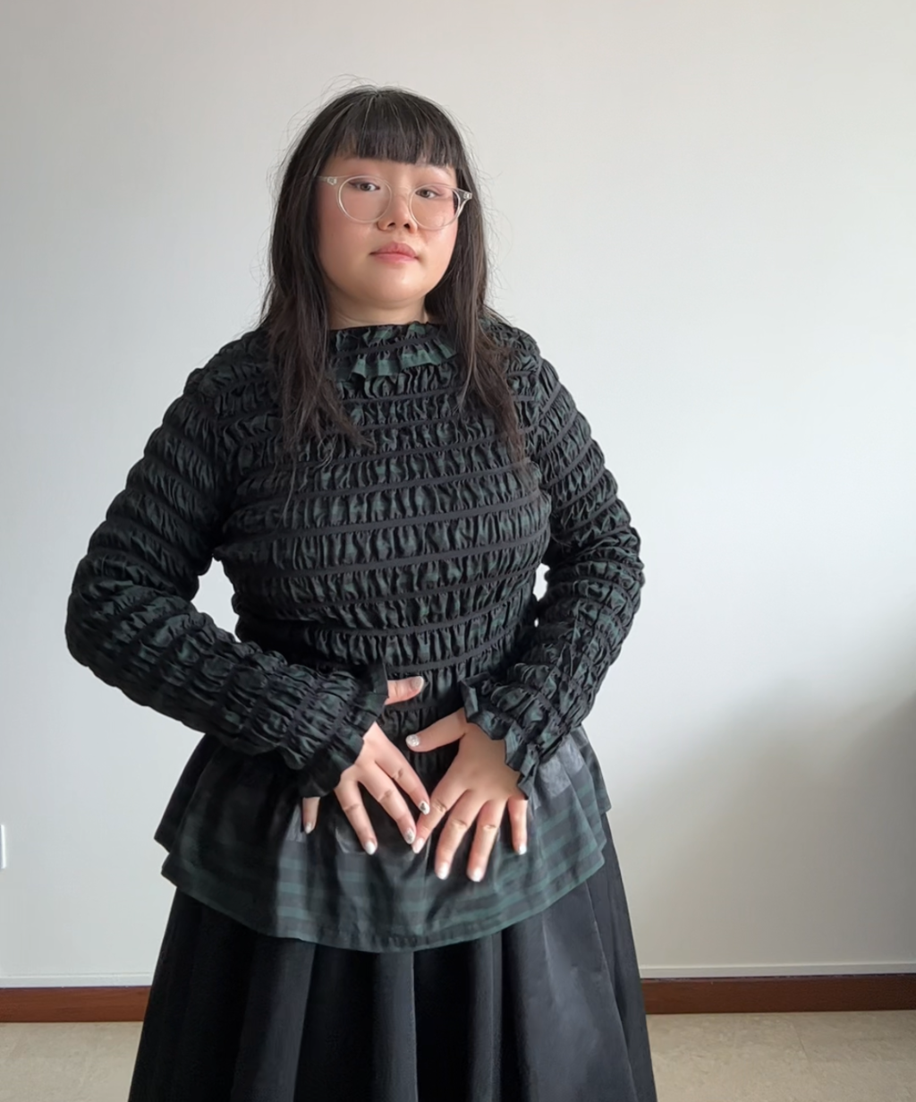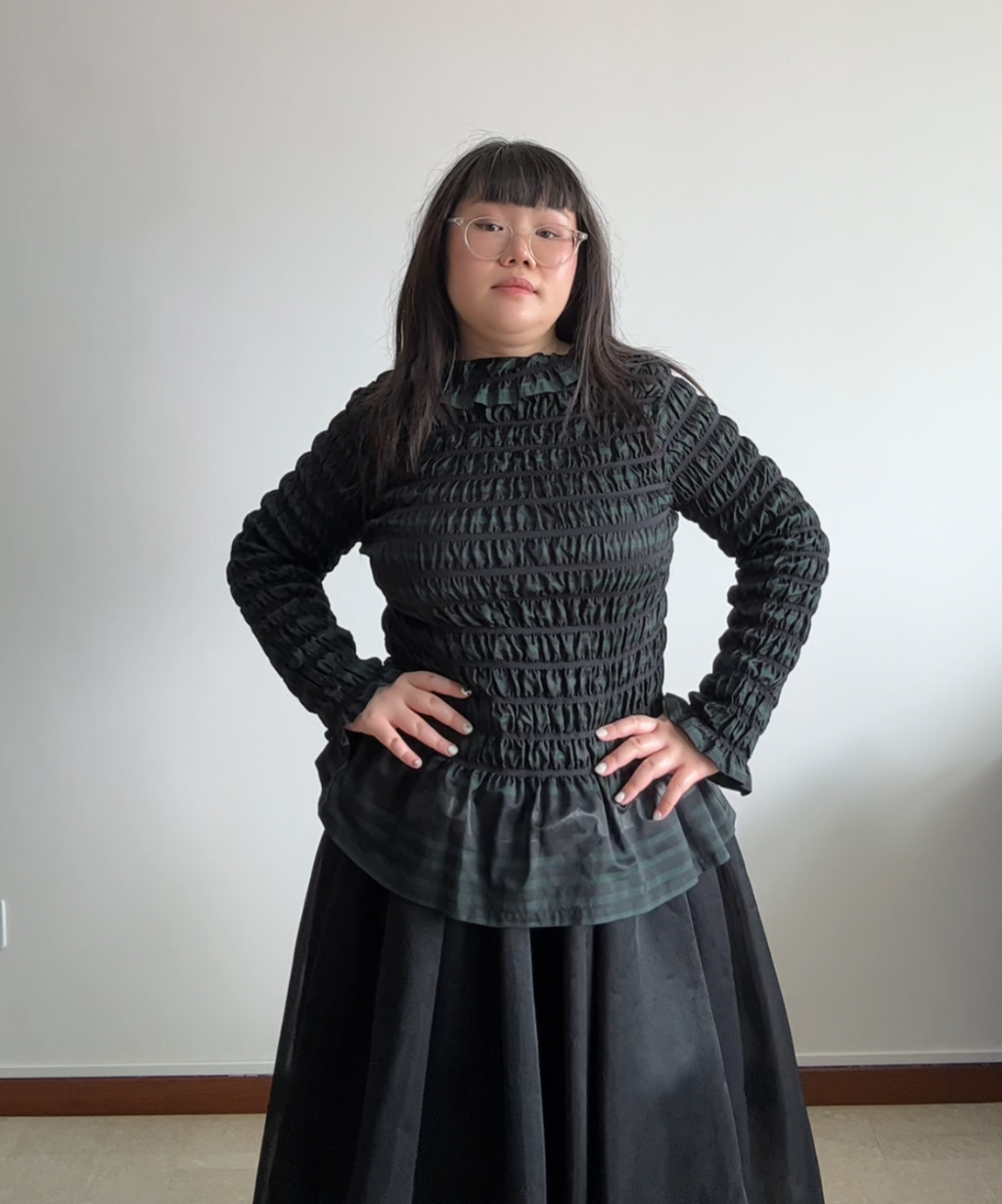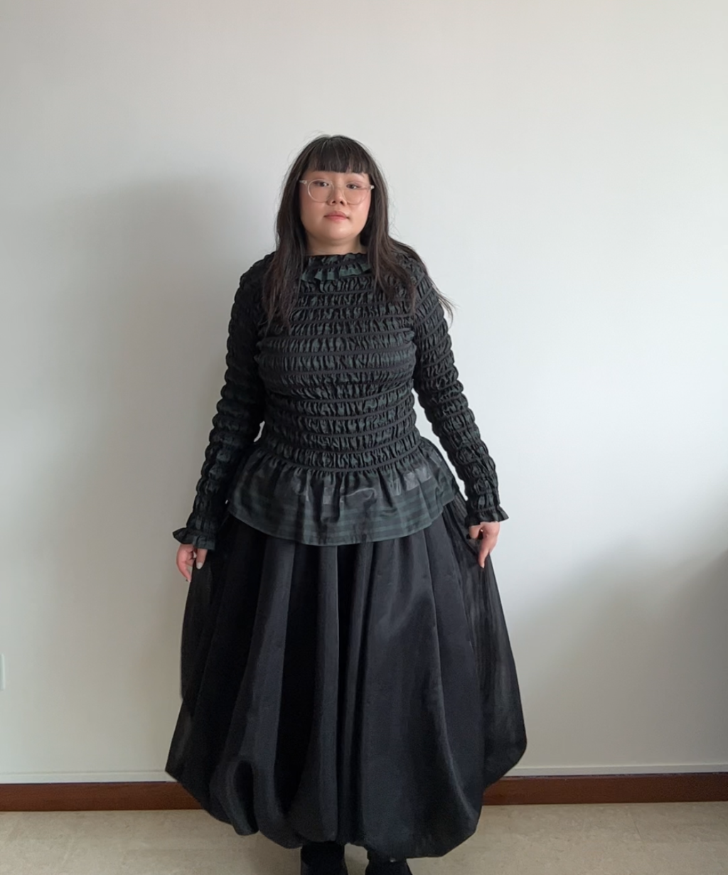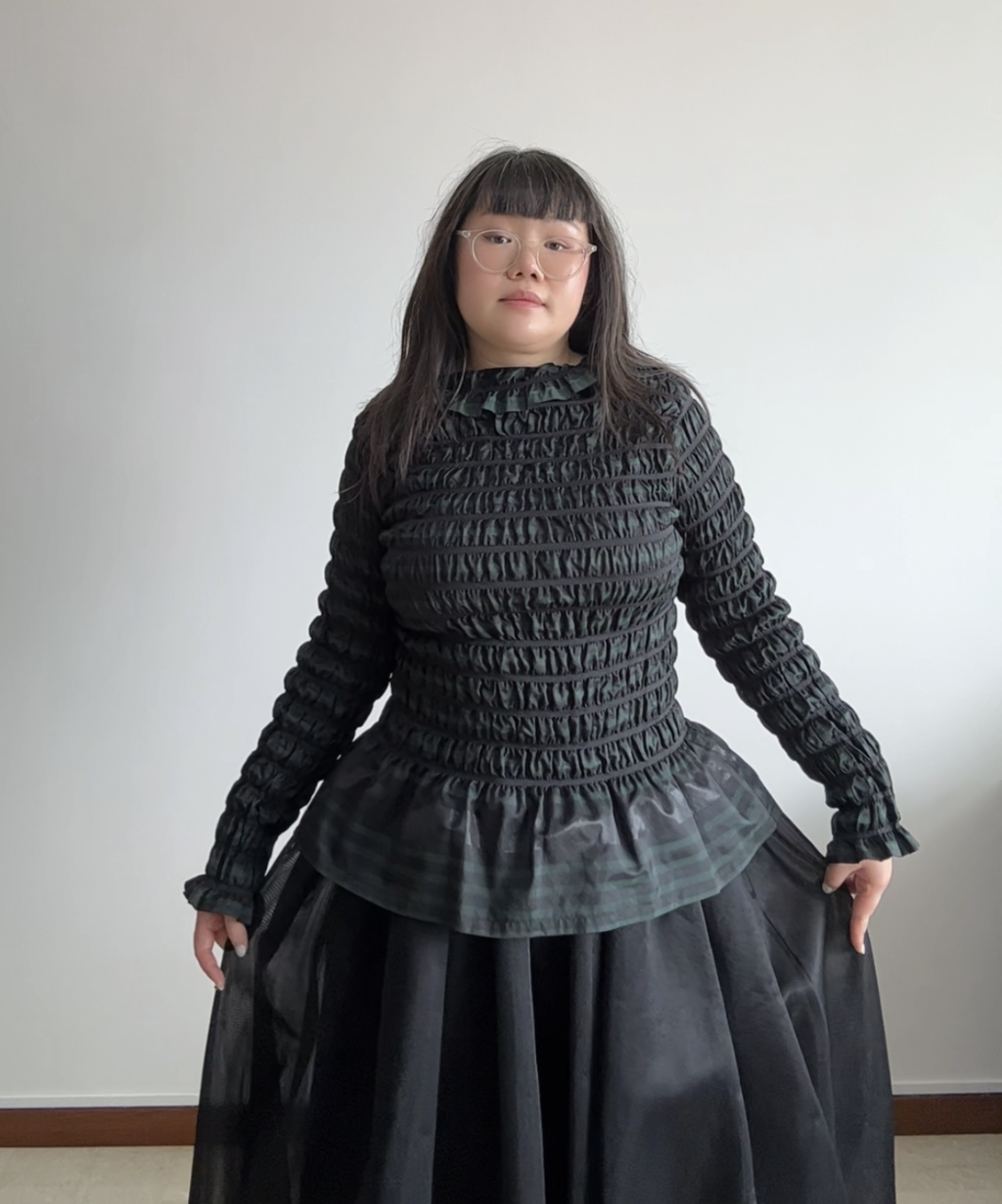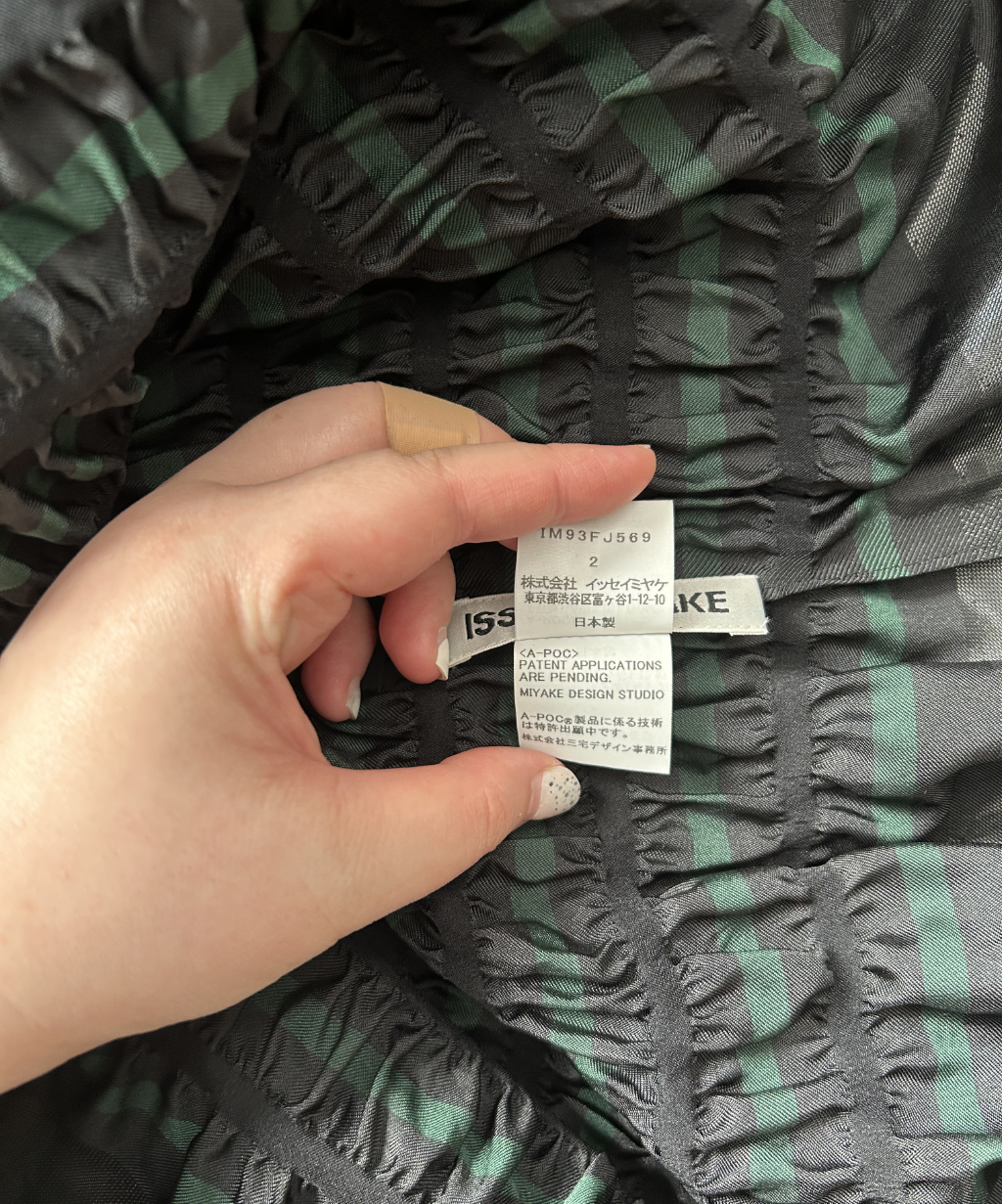 Issey Miyake APOC Shirred Striped Ruffle Hem Top Navy