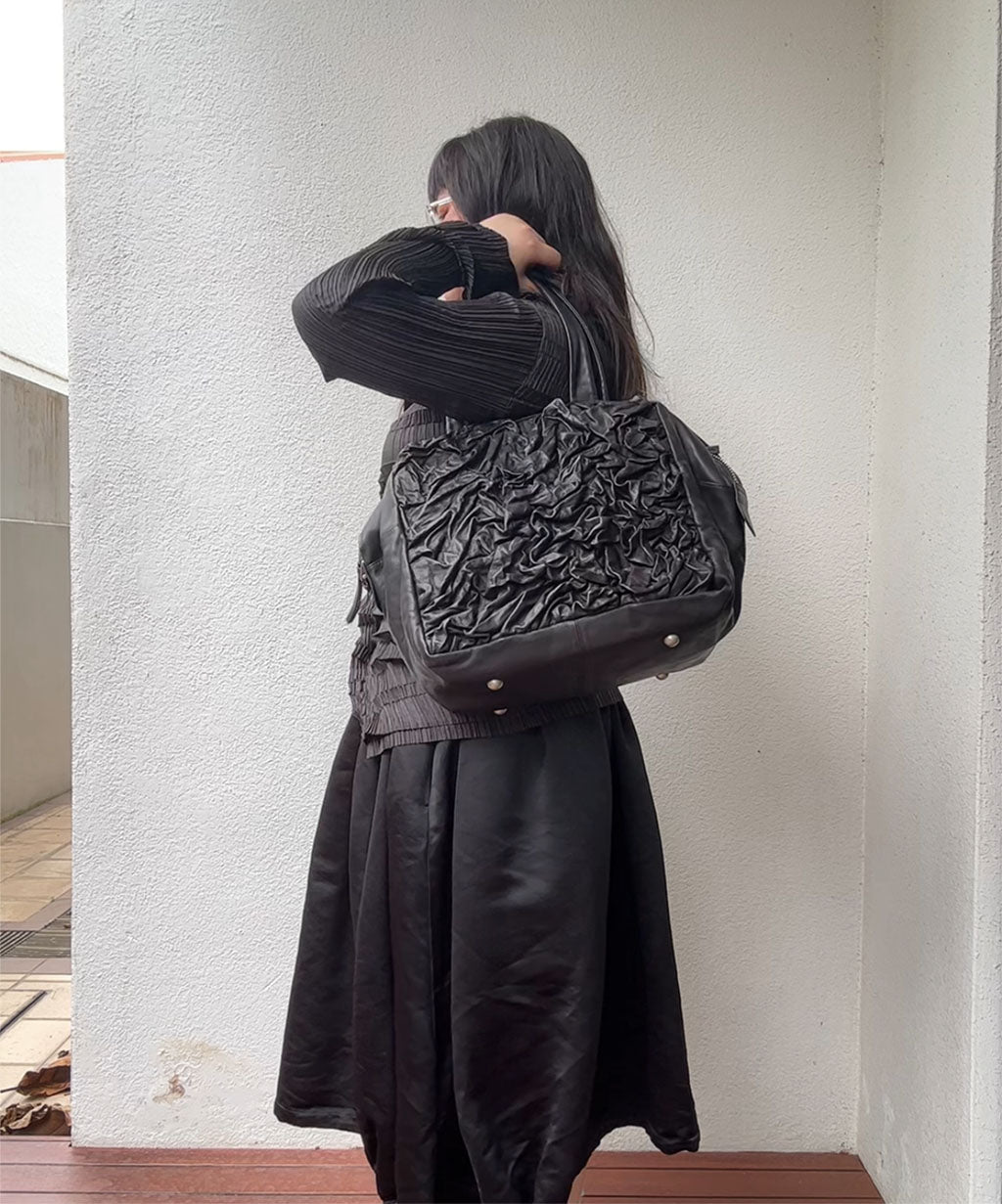 Kawa Kawa Crinkle Leather Big Boston Shoulder Bag