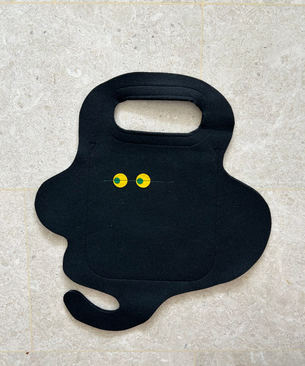 A very cute and playful flat felt bag shaped like a cat, lightweight but surprisingly practical. Even with its slim silhouette, it fits your essentials comfortably — phone, wallet, keys, and more. Soft, fun, and easy to style as a daily grab-and-go piece.