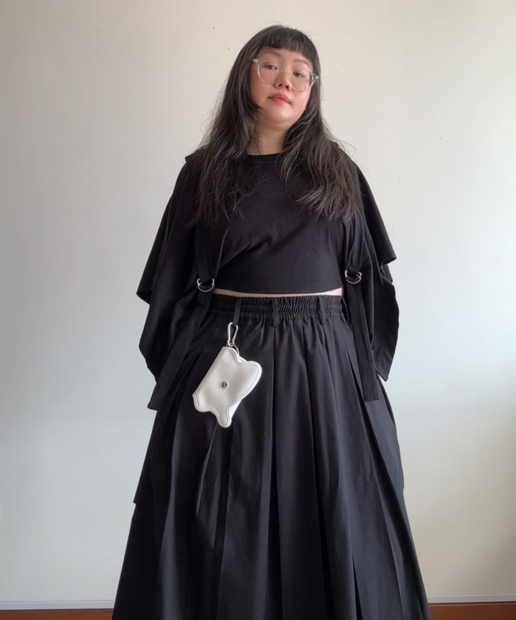 The Nori Enomoto Wave Purse in White is a sculptural statement piece, featuring the designer’s signature fluid, undulating form. Crafted with a sleek, minimalist aesthetic, its curved silhouette mimics organic waves, blending art with functionality. This exclusive white edition is only available at her pop-up store, making it a rare find that cannot be purchased online.
