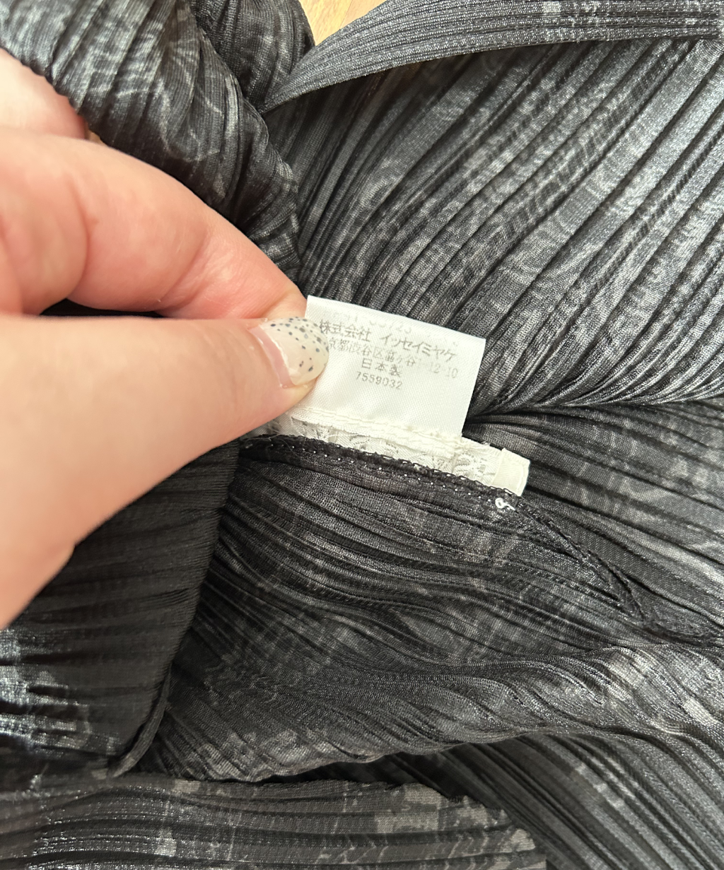 A striking, meaningful piece with beautiful cultural references woven into the print, easy to wear and unmistakably Pleats Please in texture and comfort.