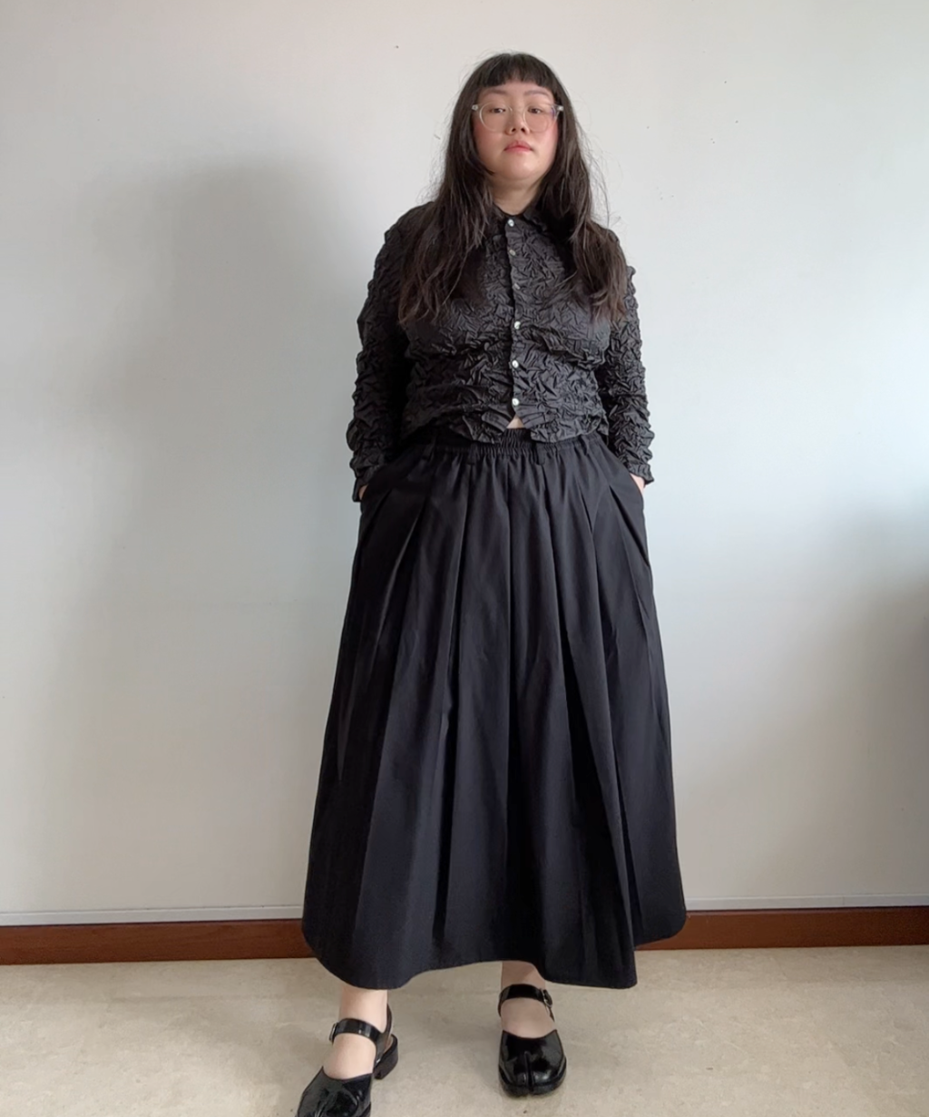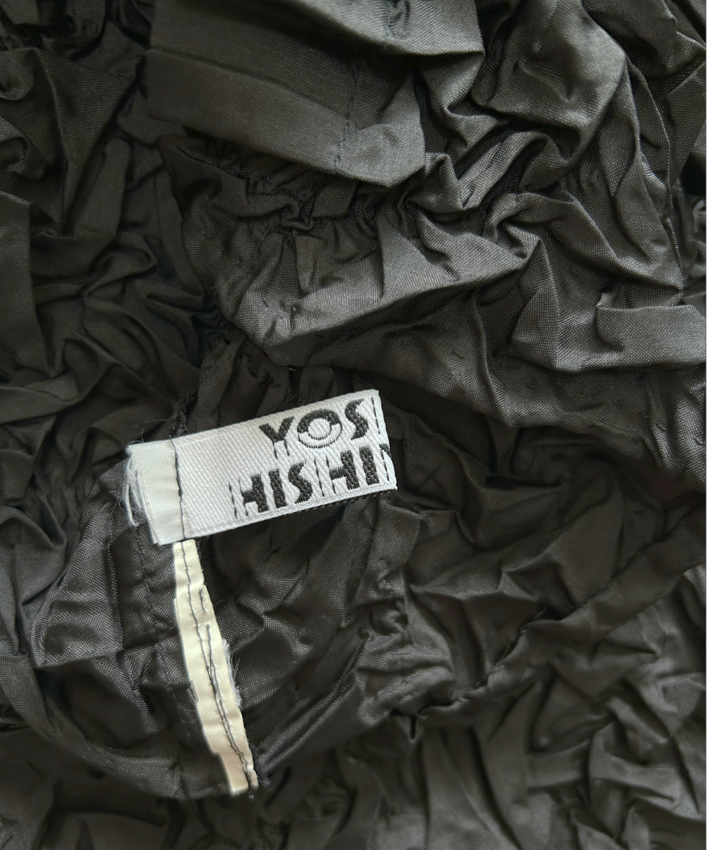 The Yoshiki Hishinuma Crinkle Button Shirt features rich, textured fabric that adds depth and interest to its design. It can be worn as a traditional button-down shirt for a polished look or styled as an open, thin outerwear for a more relaxed, layered appearance. Its unique texture and versatility make it a standout piece in any wardrobe.